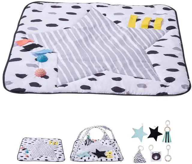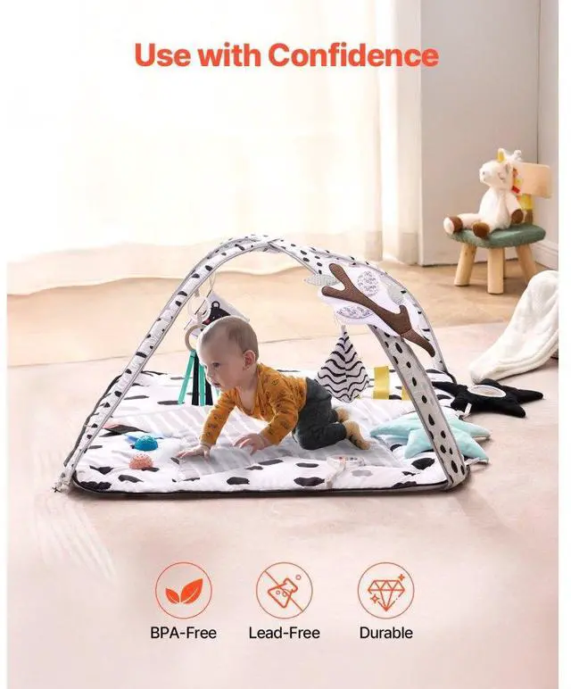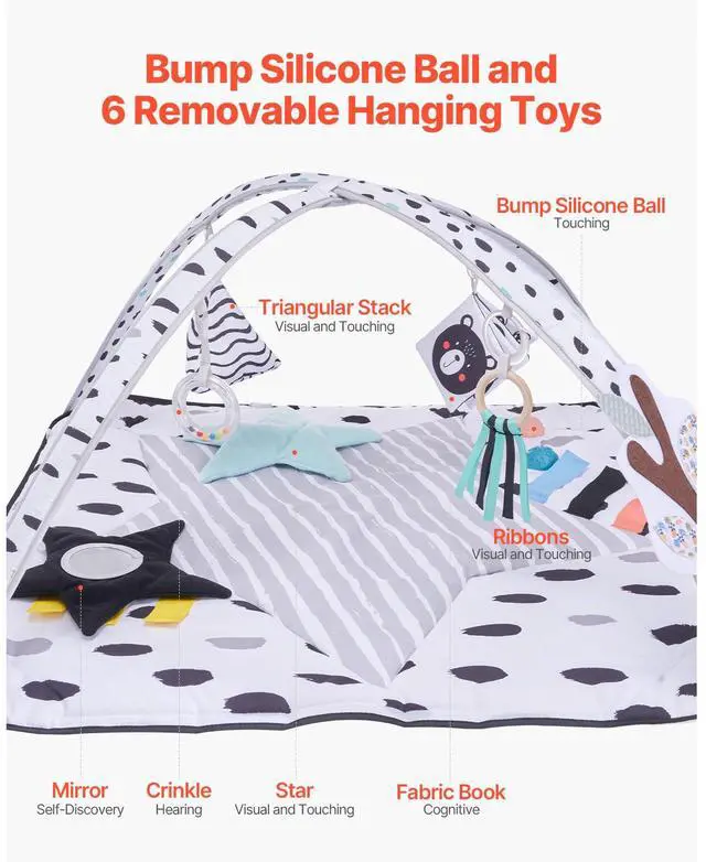 Baby Play Gym Mat Tummy Time Activity Mat with 6 Sensory Toys 34.4" x 34.4"