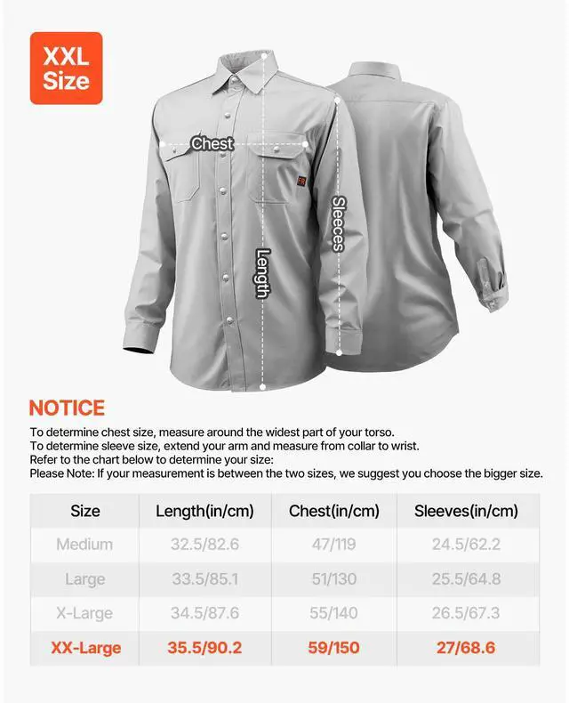 Chest: 59 in,Sleeve Length: 27 in,Size: XXL,Color: Gray,Material: Pure Cotton,Flame-Resistant Material: Yes,Product Dimensions: 35.5 x 59 x 27.0 in / 901.7 x 1498.6 x 685.8 mm,Button Type: Snap Button,Fabric Weight: 7 oz,Length: 35.5 in,Item Model Number: AP-6832,Pockets: 2,Net Weight: 1.59 lbs / 0.72 kg ,Arc Rating: ATPV 9.2 Cal/cm²