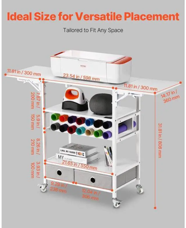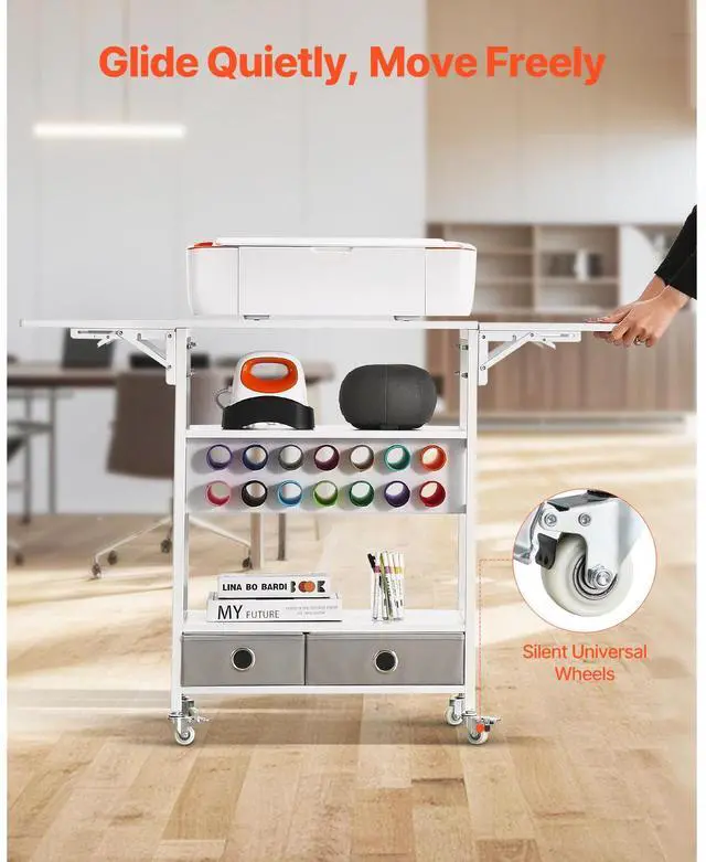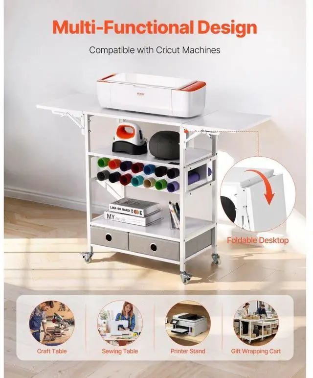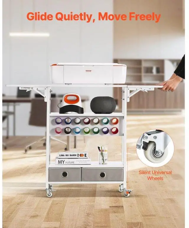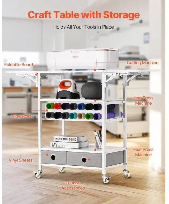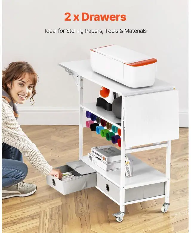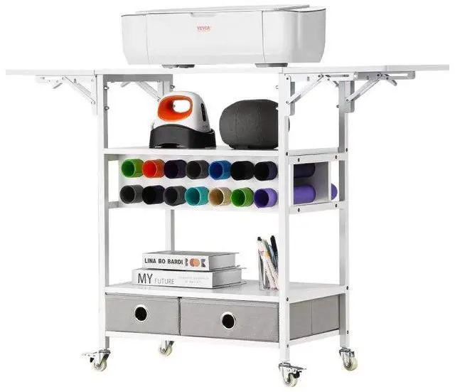 Rolling Craft Cart and Storage Table 14 Vinyl Roll Holders 2 Drawers Foldable