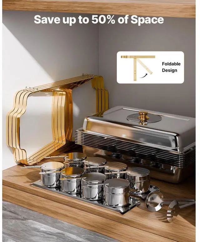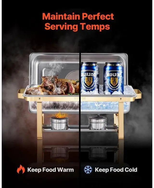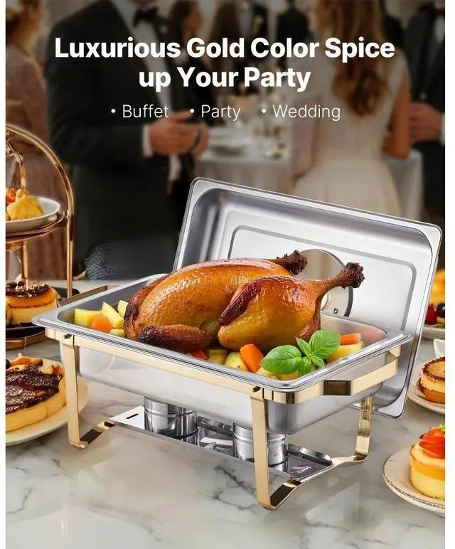 8 Qt 4 Pack Rectangle Chafing Dish Buffet Set Full Size Pan Stainless Steel Gold