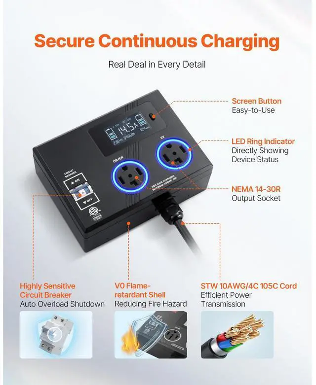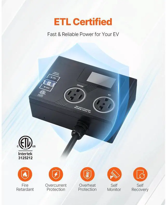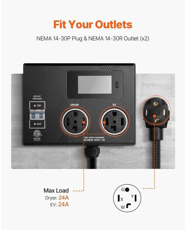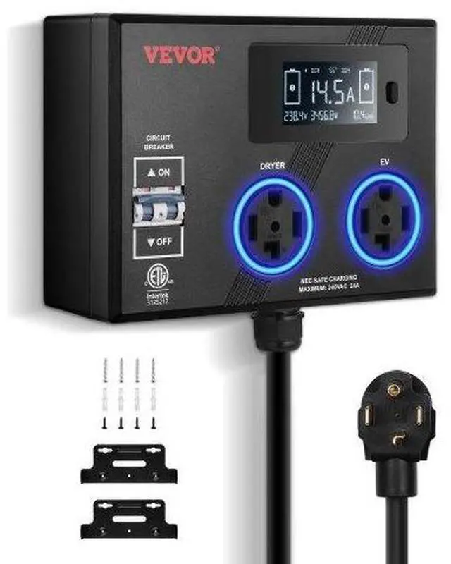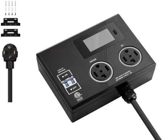 NEMA Splitter for Dryer and EV NEMA 14-30P 2x 14-30R 3.4'' LCD Screen ETL