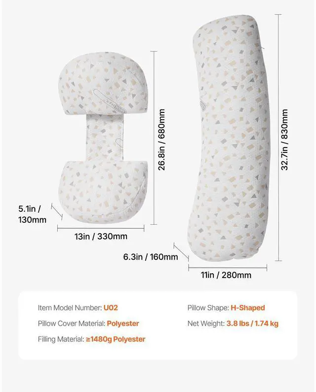 Pillow Shape: H-Shaped,Item Model Number: U02,Pillow Cover Material: Polyester Fiber,Filling Material: 1480g Polyester Fiber,Net Weight: 3.8 lbs / 1.74 kg
