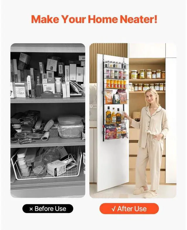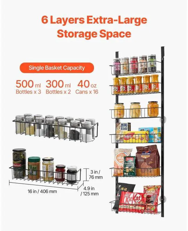6-Tier Over the Door Pantry Organizer Hanging Storage Rack Adjustable Kitchen