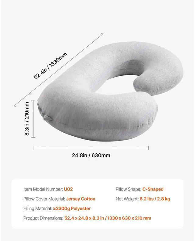 Pillow Shape: C-Shaped,Item Model Number: U02,Pillow Cover Material: Jersey Cotton,Filling Material: 2300g Polyester Fiber ,Product Dimensions: 52.4 x 24.8 x 8.3 in / 1330 x 630 x 210 mm,Net Weight: 6.2 lbs / 2.8 kg