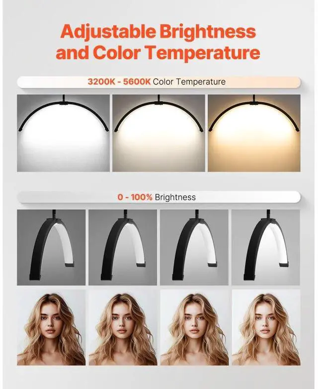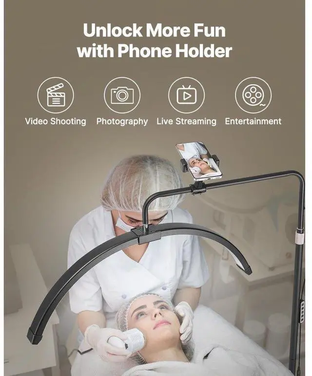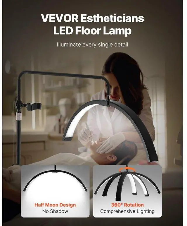 Half Moon Light for Esthetician 26inch Dimmable LED Floor Lamp Lash Light Arched