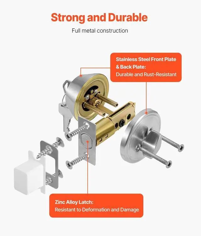 Lock Deadbolt Material: Zinc Alloy (Tongue) + Galvanized Iron (Main Body)