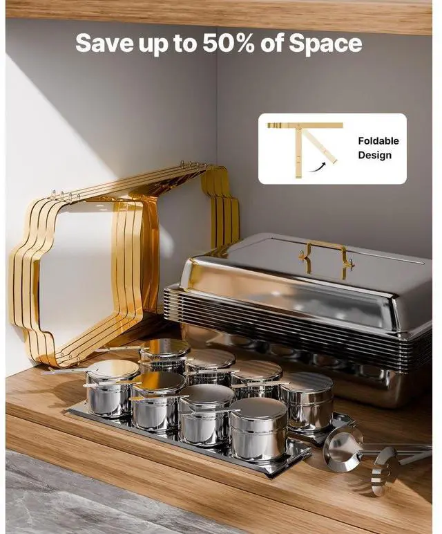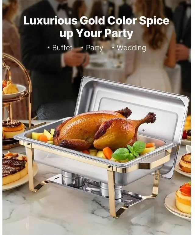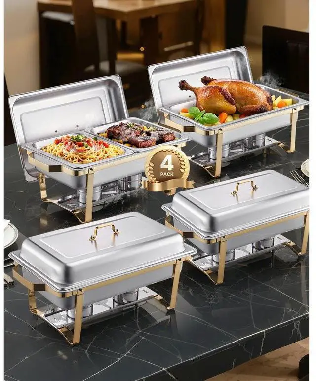 8 Qt 4 Pack Rectangle Chafing Dish Buffet Set Full-Size & Half-Size Pans Gold