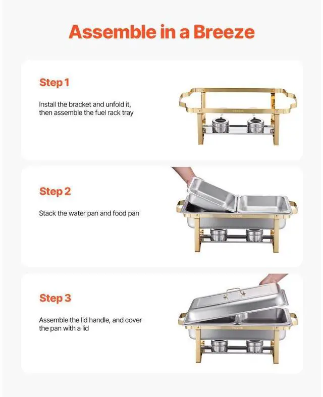 Full Size Water Pan Capacity: 12Qt / 11.5L,Color: Gold,Full Size Food Pan Capacity: 8Qt / 7.5L,Item Model Number: HZ-433,Product Weight: 37 lbs / 16.8 kg ±5 %,Quantity: 4,Half Size Food Pan Capacity: 4Qt / 4L,Material: Stainless Steel,Heating Method: Fuel