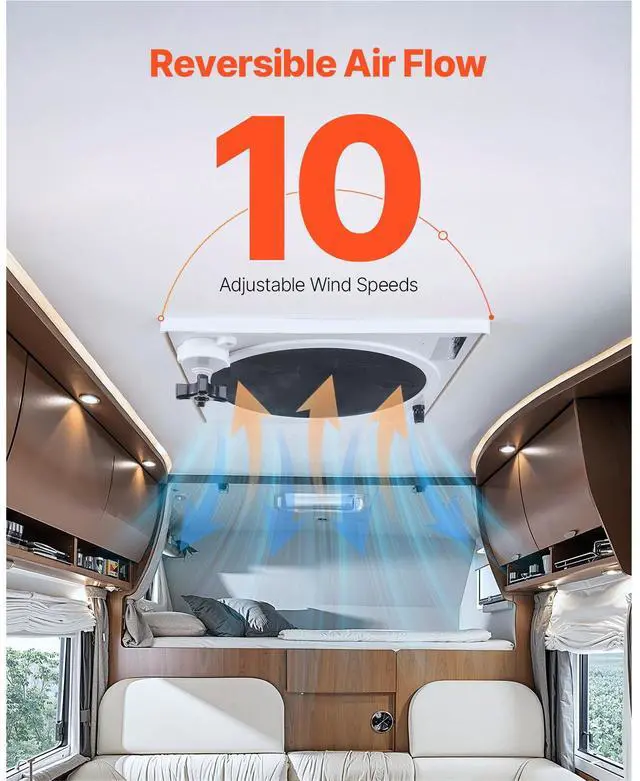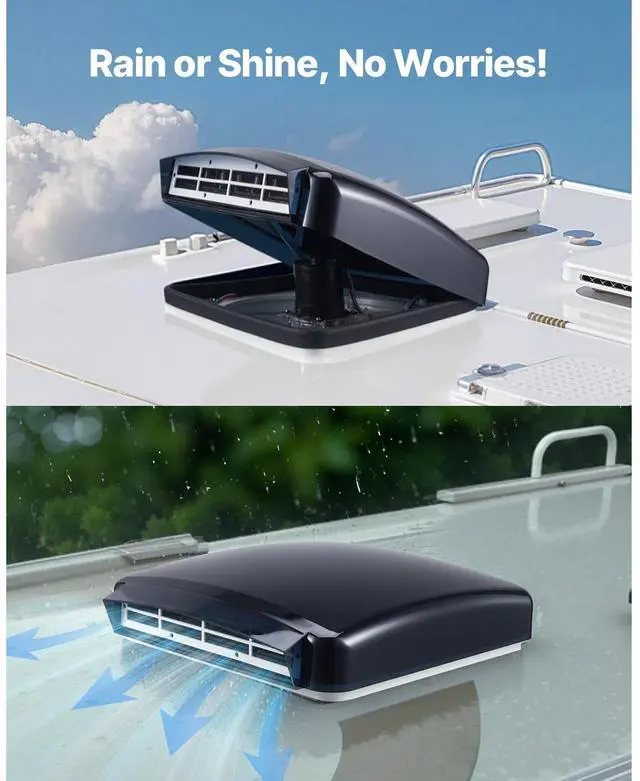 RV Vent Roof Fan 14 inch Reversible with Rain Cover Power Top Lid