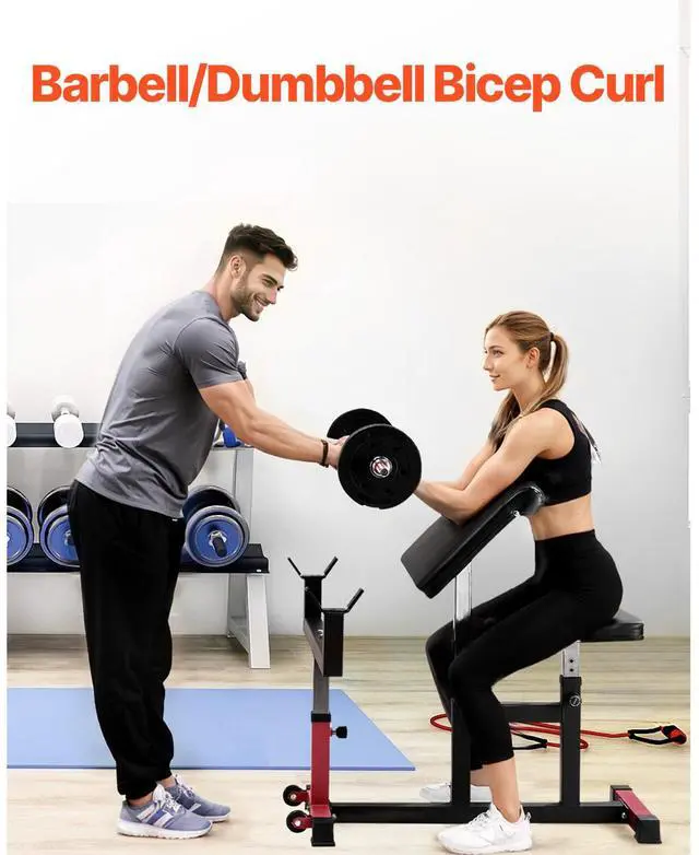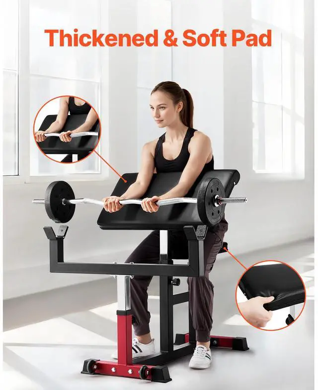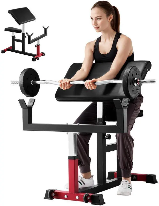 Preacher Curl Bench Adjustable Home Gym Biceps Machine Barbell Equipment