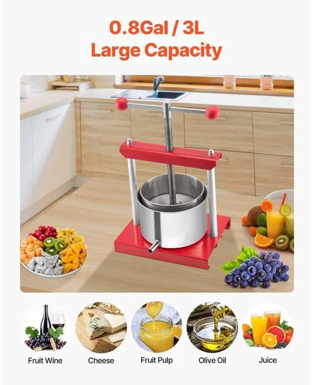 Fruit Wine Press Manual Press for Wine Making 0.8 Gal/3L Stainless Steel