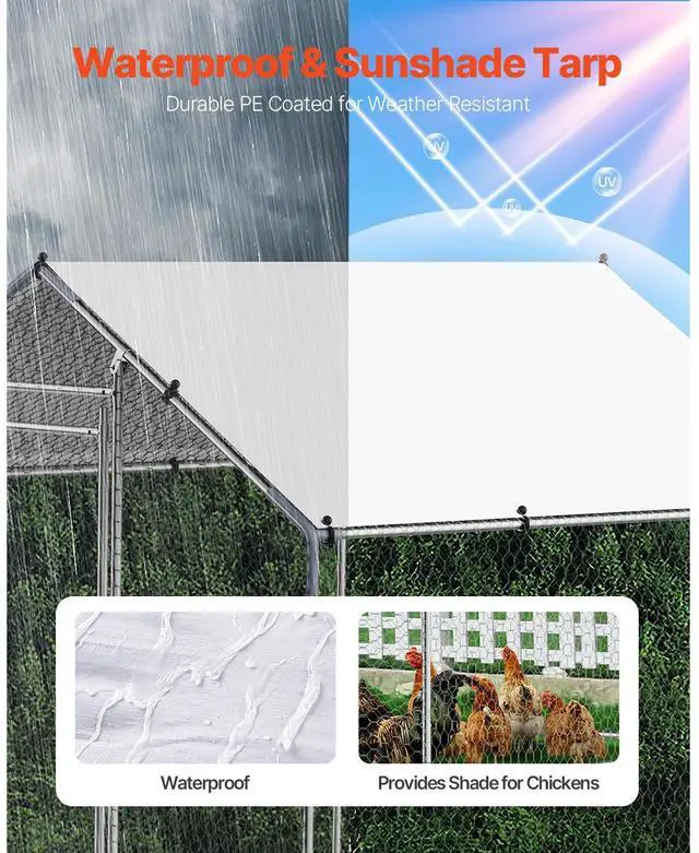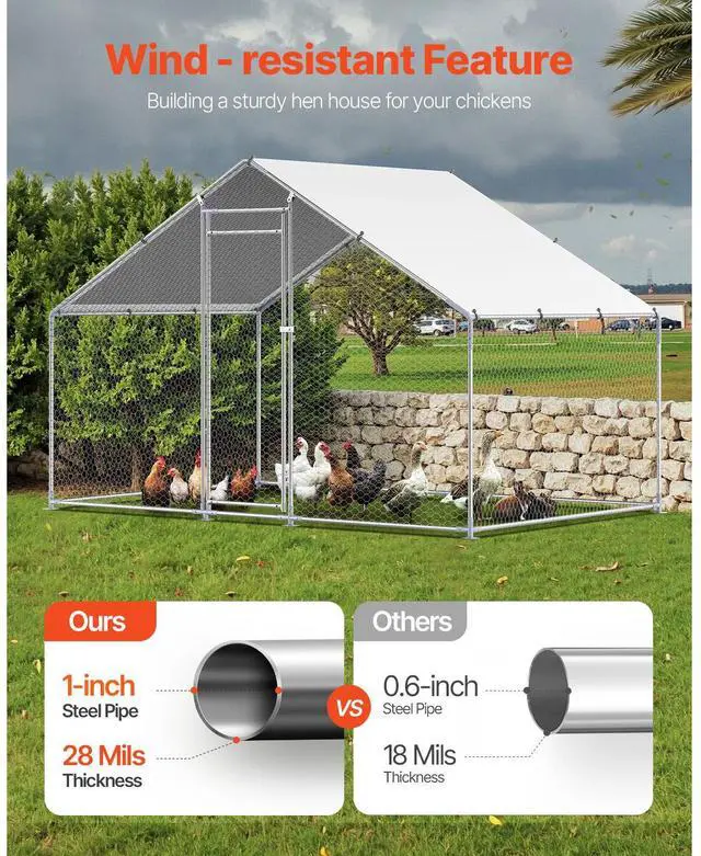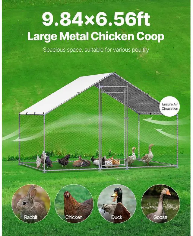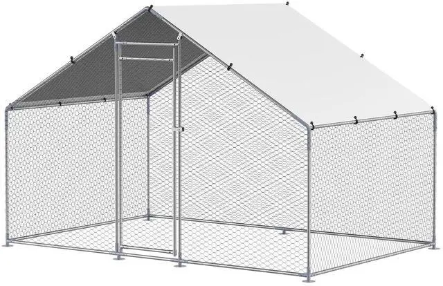 Metal Chicken Coop 9.8x6.5x6.5ft Walk-in Chicken Run with Cover Spire Roof