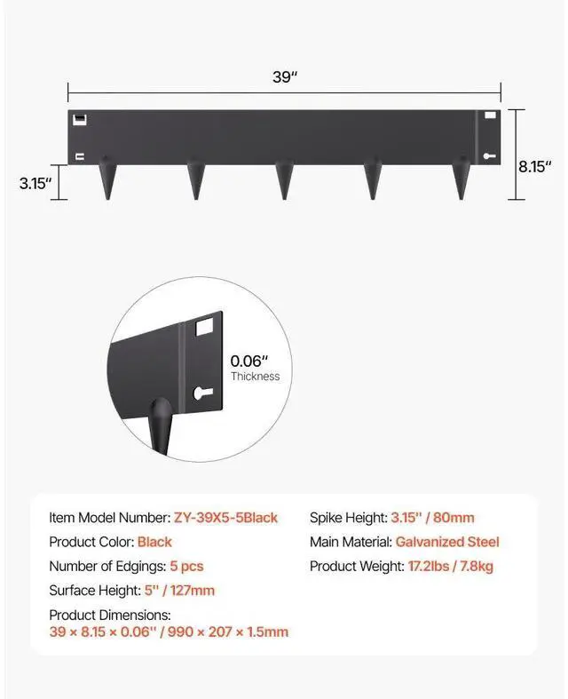 • VEVOR Steel Landscape Edging 5 Packs 39x5in Rust-Resistant Edging Border Black