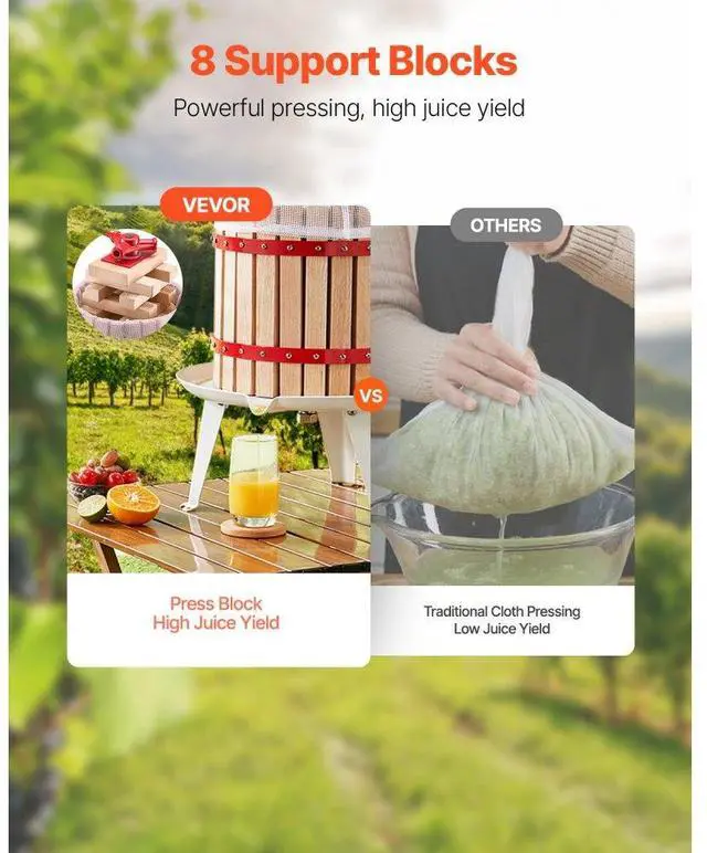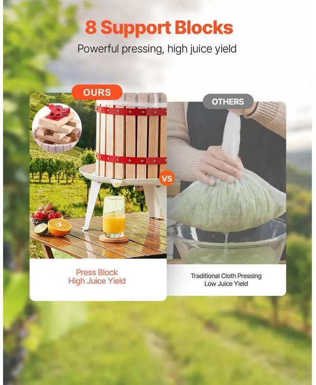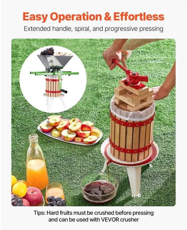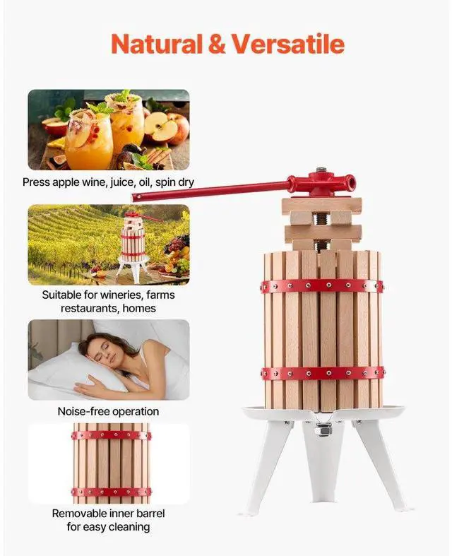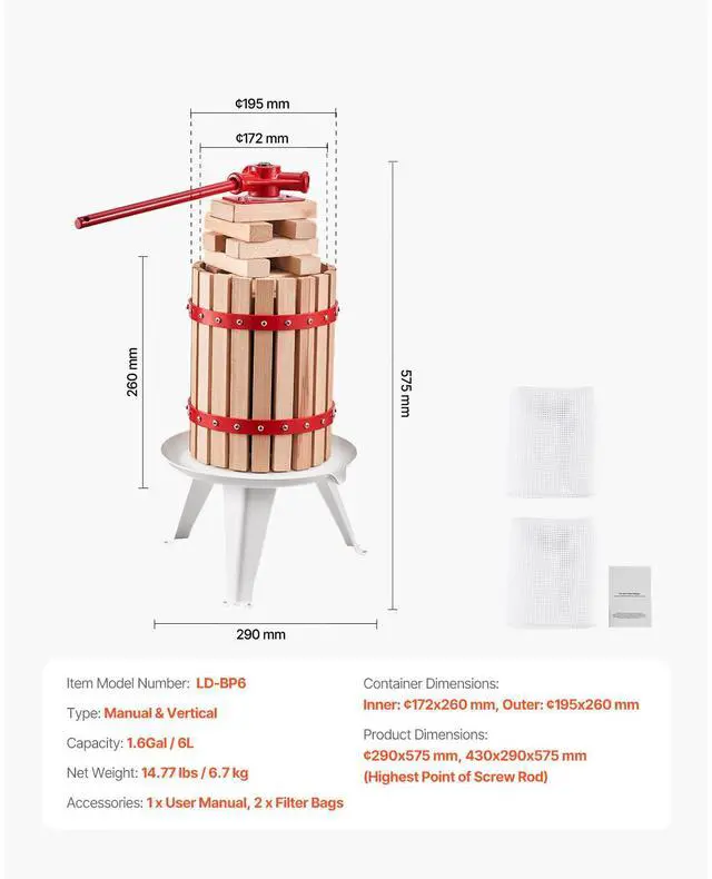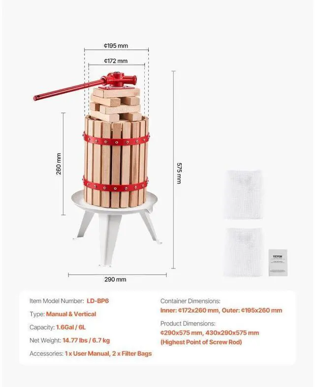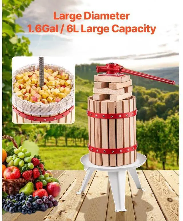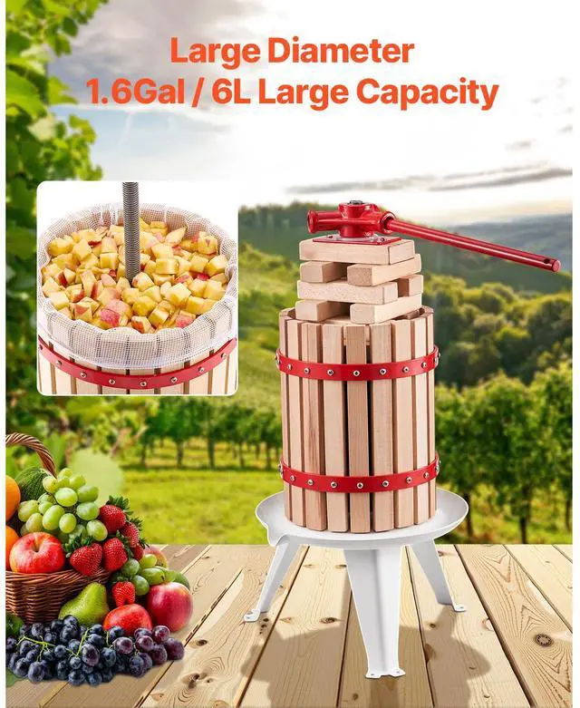 Fruit Wine Press Manual Press for Wine Making 1.6 Gal/6L Wood Basket