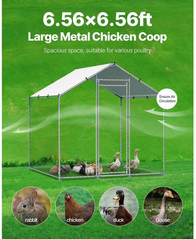 Metal Chicken Coop 6.56x6.56x6.56ft Walk-in Chicken Run with Cover Spire Roof