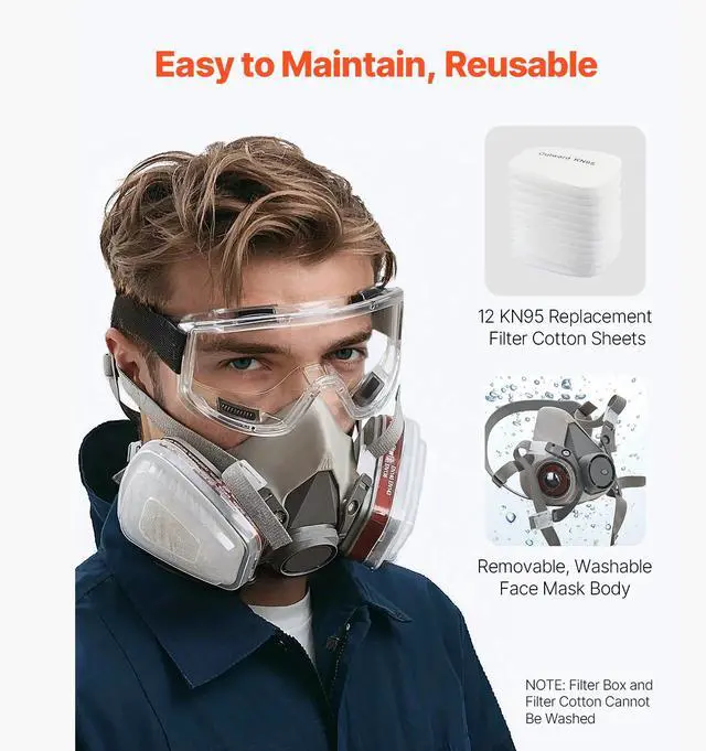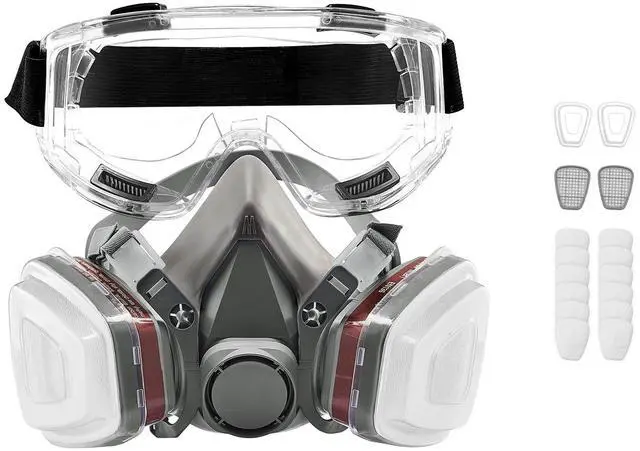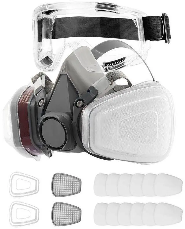 Respirator Mask Reusable Half Face Cover with Safety Glasses Filters for Dust