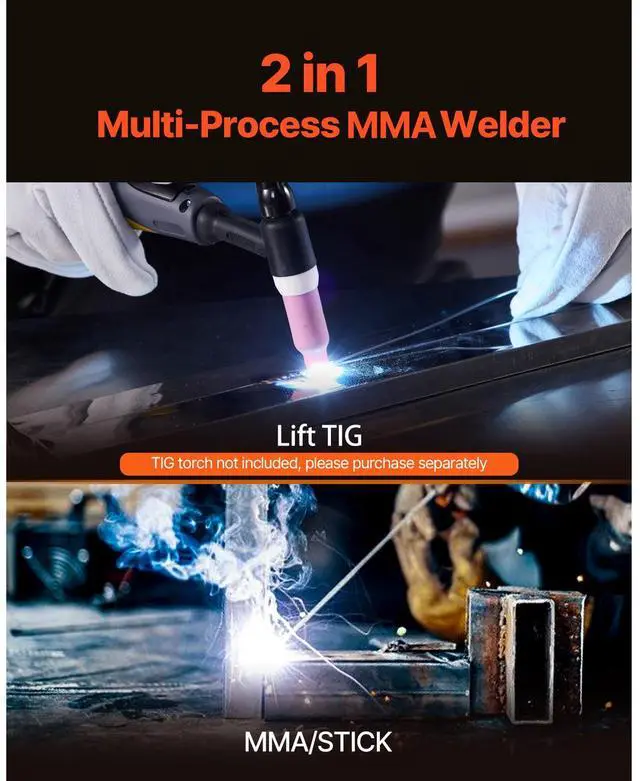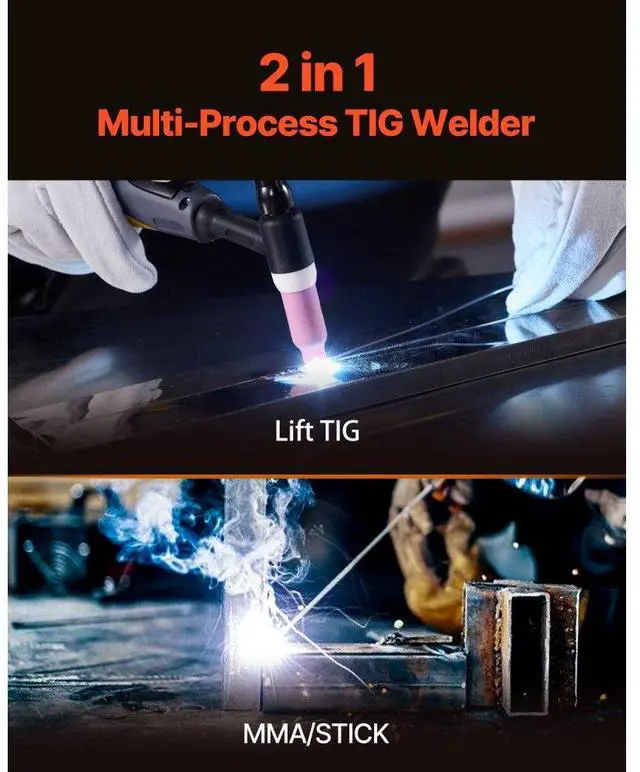 • VEVOR TIG Welder 2-In-1 Welding Machine Lift MMA Stick Arc IGBT Hot Start LED