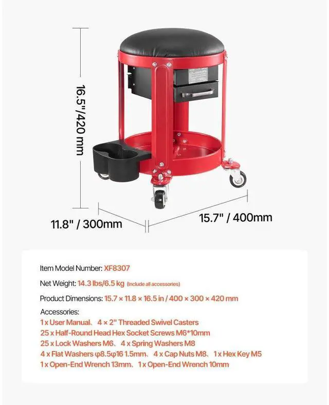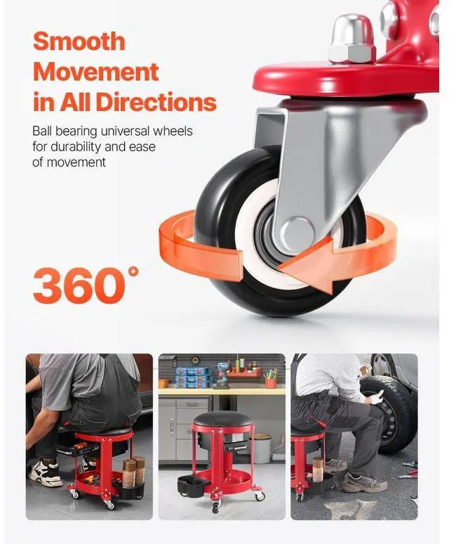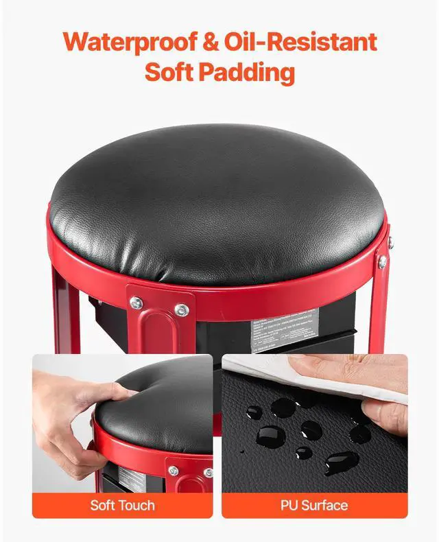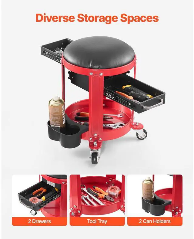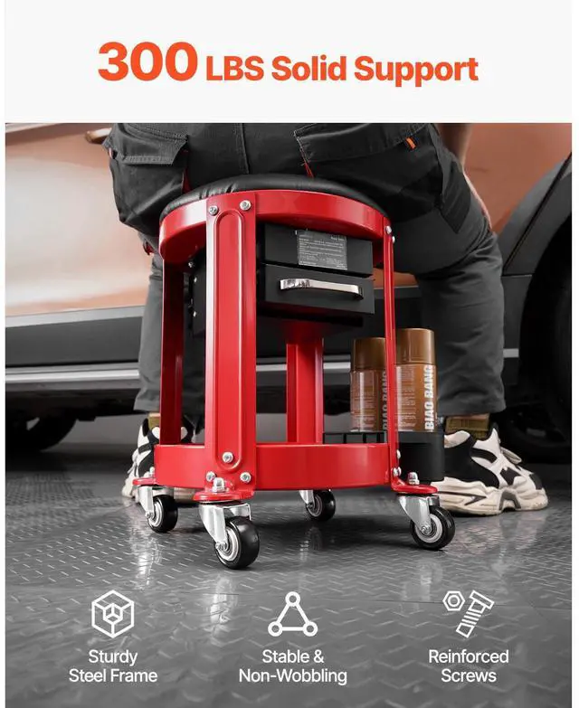 Rolling Mechanic Stool Garage Seat 300 lbs Load with Wheels & Storage