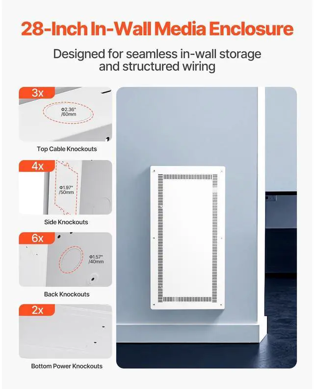 Structured Media Enclosure 28 in Recessed in-Wall TV Media Box with Cover