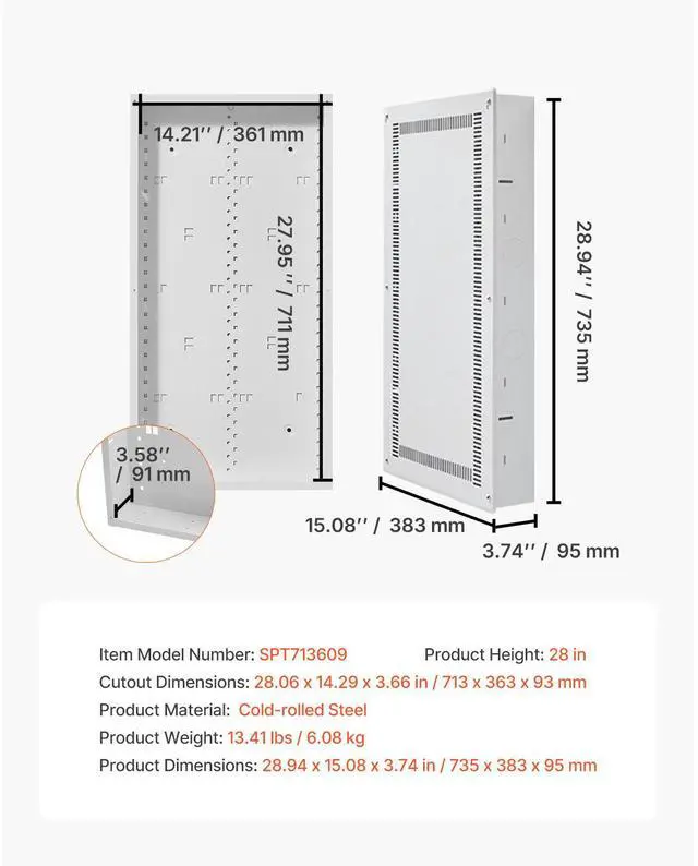 Cutout Dimensions: 28.06 x 14.29 x 3.66 in / 713 x 363 x 93 mm,Product Material: Cold-rolled Steel,Product Height: 28 in,Item Model Number: SPT713609,Product Weight: 13.41 lbs / 6.08 kg,Product Dimensions: 28.94 x 15.08 x 3.74 in / 735 x 383 x 95 mm