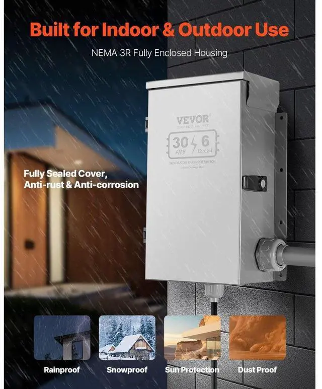 Manual Transfer Switch 30A Generator Transfer Switch Kit NEMA 3R 7500W 120/240V