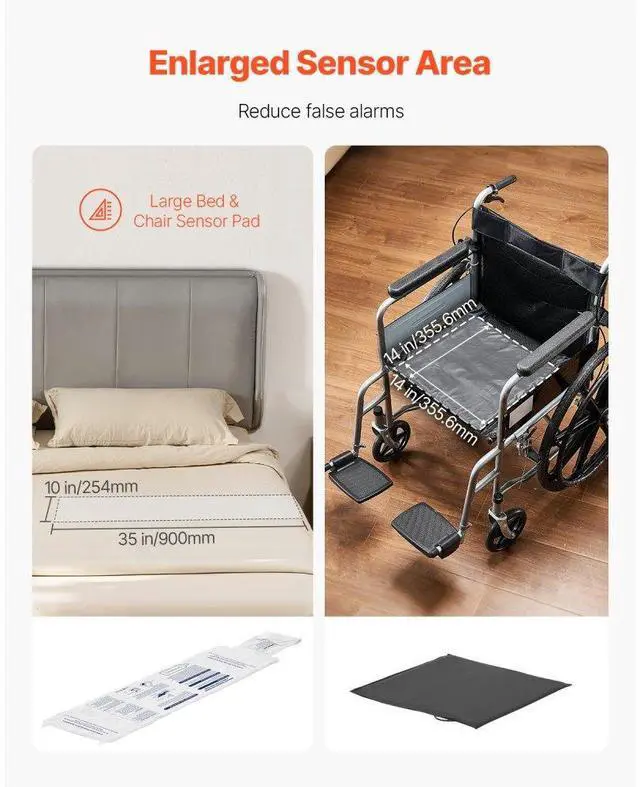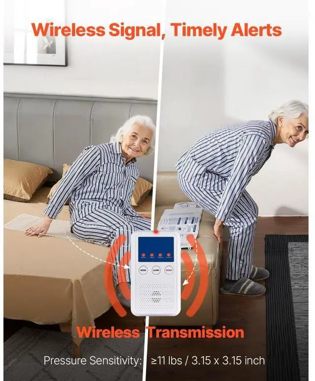 Early Alert Bed Alarm System Wireless Bed and Chair Sensor Pad with Pager