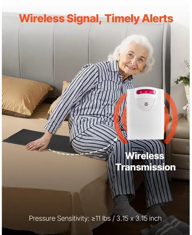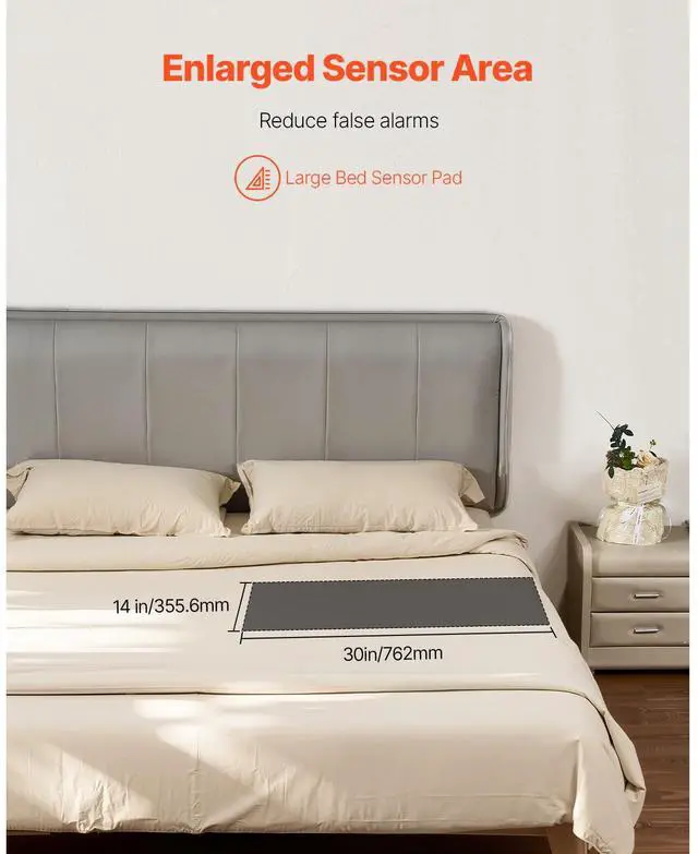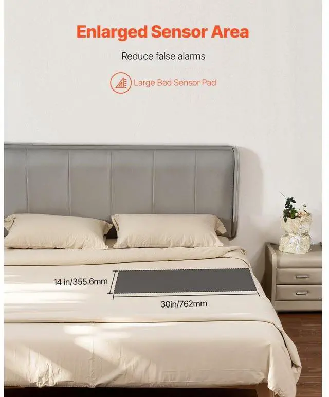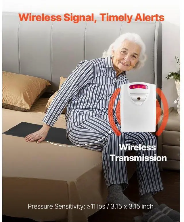 Bed Alarm System for Elderly Adults 14" x 30" Wireless Bed Sensor Pad with Pager