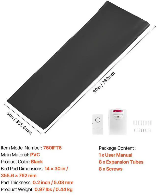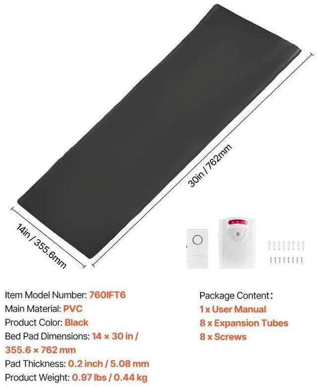 Bed Pad Dimensions: 14 x 30 in / 355.6 x 762 mm,Product Color: Black,Item Model Number: 760IFT6,Product Weight: 0.97 lbs / 0.44 kg,Main Material: PVC,Pad Thickness: 0.2 inch / 5.08 mm