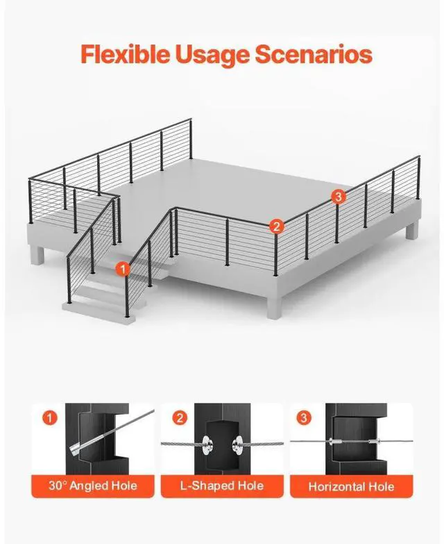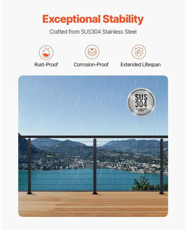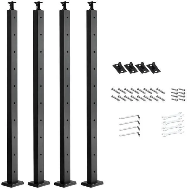 VEVOR 4-Pack Cable Railing Post, 36x2x2 In Horizontal-Hole Deck Railing Post with Pre-Drilled Holes, Stainless Steel Cable Rail Post with Horizontal and Curved Bracket, Black, 4JZLGZXHS914MY65M001V0