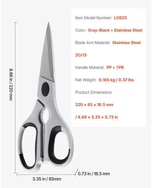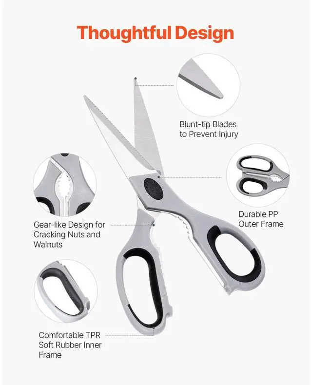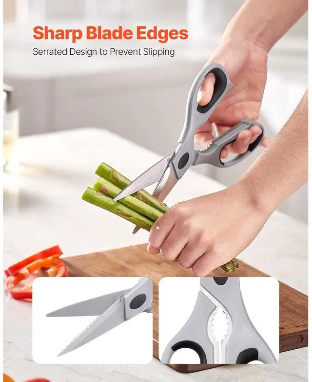 Kitchen Scissors Stainless Steel Kitchen Shears Protective Sheath Grey