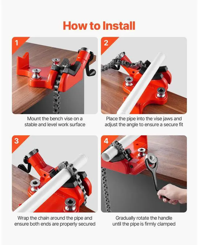 Screw Bench Chain Vise 1/4 to 6 inch Capacity Heavy Duty Chain Pipe Vise