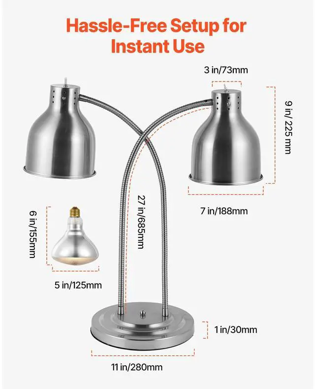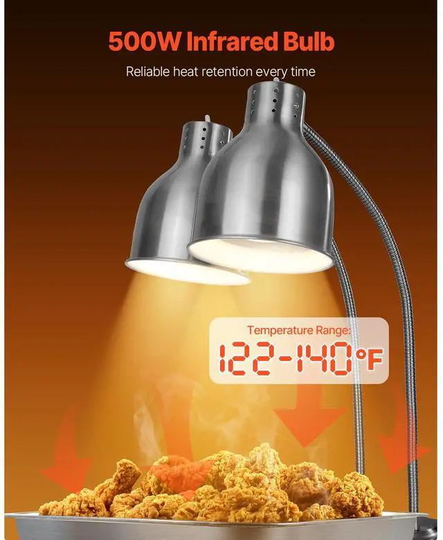 Commercial Food Heat Lamp 2-head Electric Catering for Food Restaurant & Buffet
