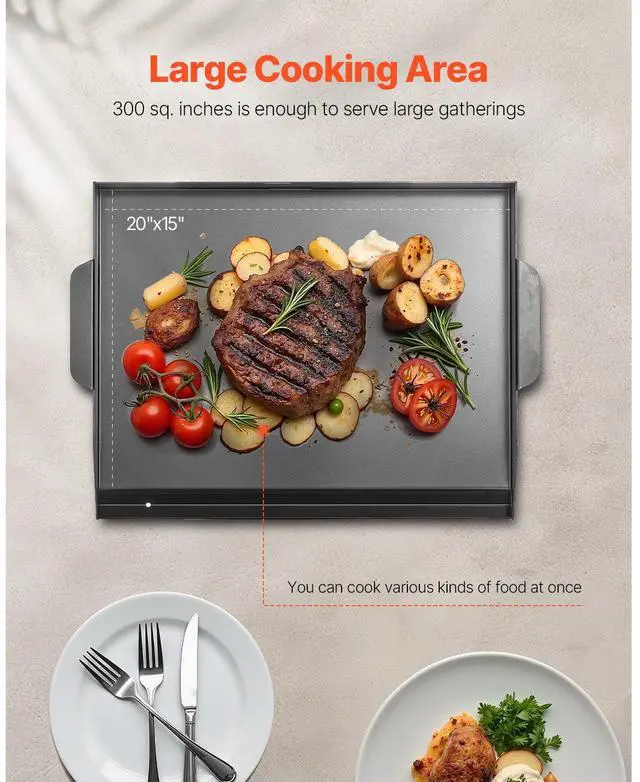 22x16 in Flat Top Griddle Carbon Steel Universal BBQ Grill Pan Cookware
