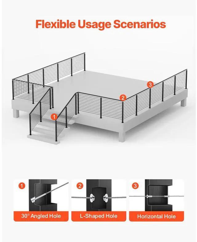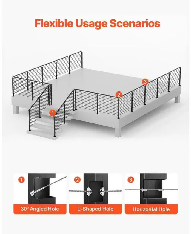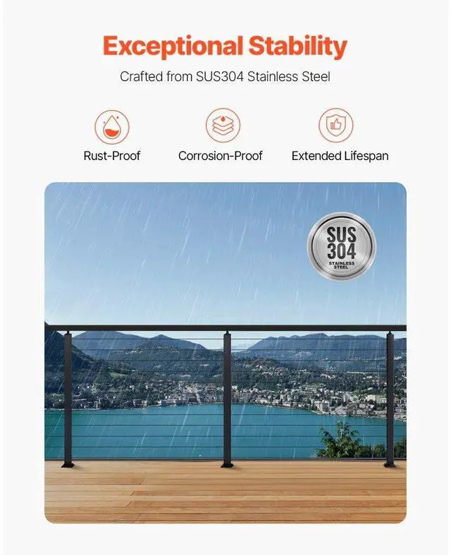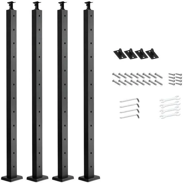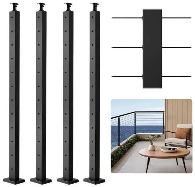 VEVOR 4-Pack Cable Railing Post, 42x2x2 In Horizontal-Hole Deck Railing Post with Pre-Drilled Holes, Stainless Steel Cable Rail Post with Horizontal and Curved Bracket, Black, 4JZLGZXHS106URZU0001V0