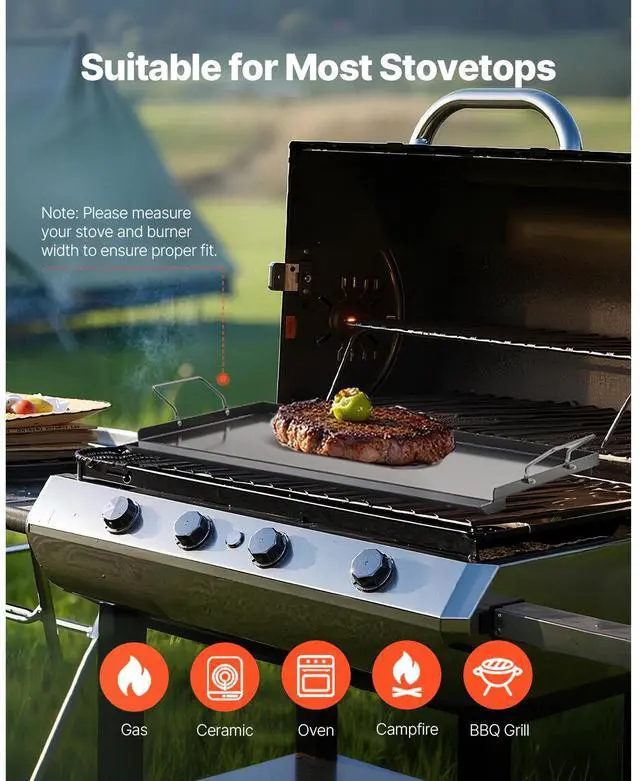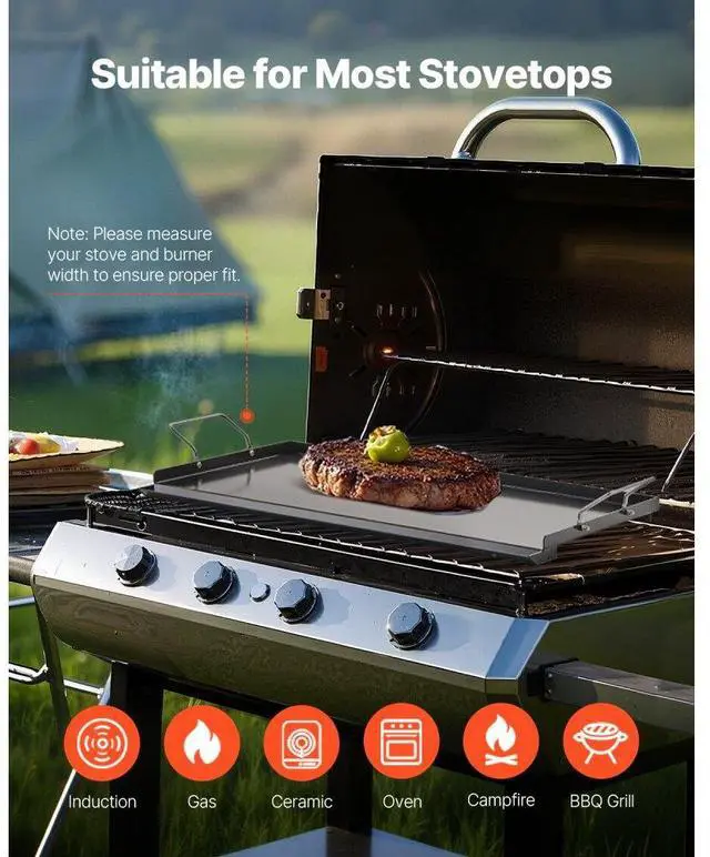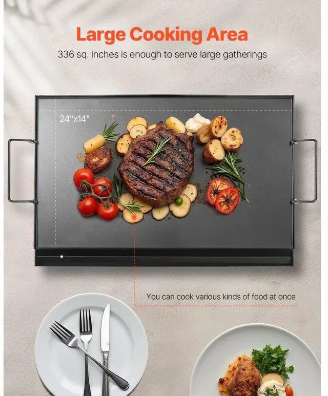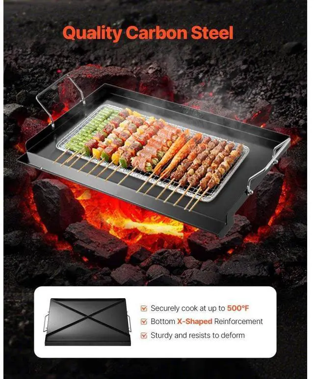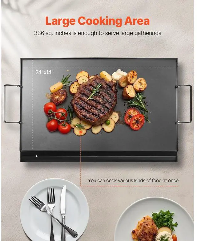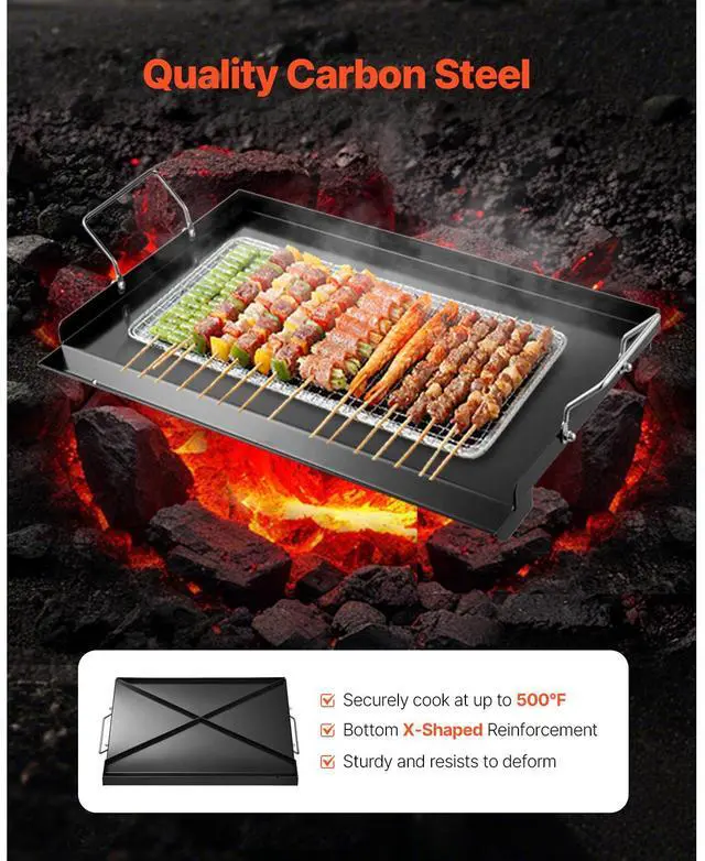 24x16 in Flat Top Griddle Carbon Steel Universal BBQ Grill Pan Cookware