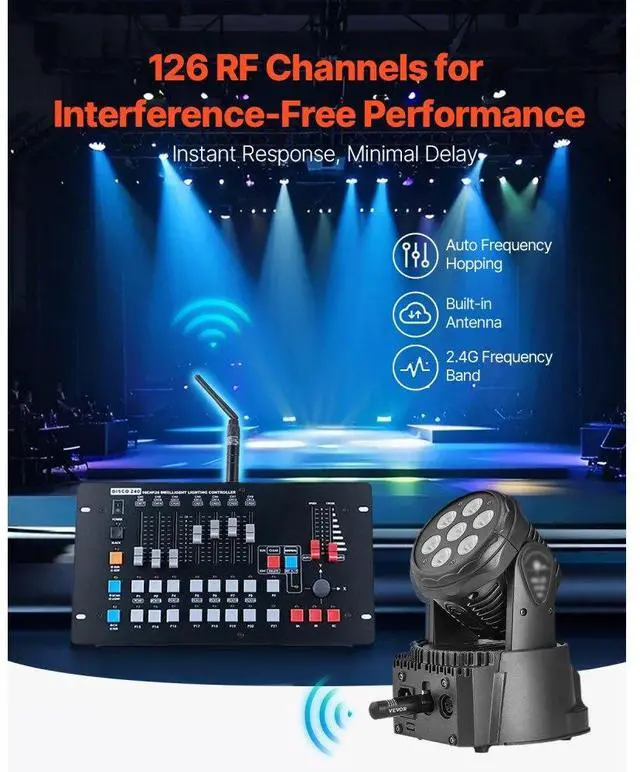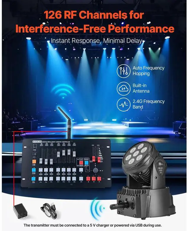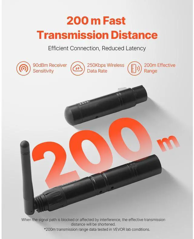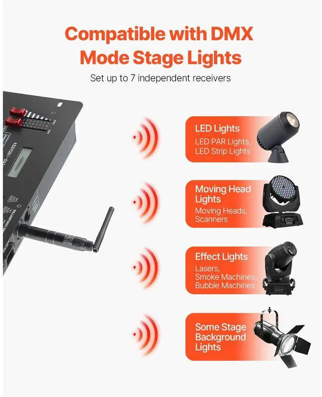 DMX Wireless Receiver Transmitter Controller for LED Stage Light 8 PCs Black