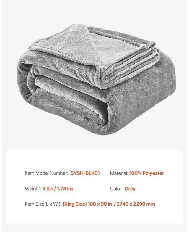 Procuct Weight: 4 lbs / 1.74 kg,Color: Grey,Item Model Number: SYSH-BLK01,Material: 100% Polyester,Product Size: (King Size) 108 x 90 in / 2740 x 2290 mm