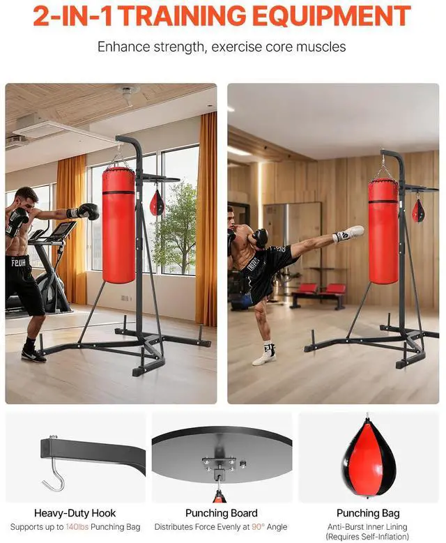 • VEVOR 2 in 1 Heavy Duty Punching Bag Frame Boxing Punching Fitness Stand Steel
