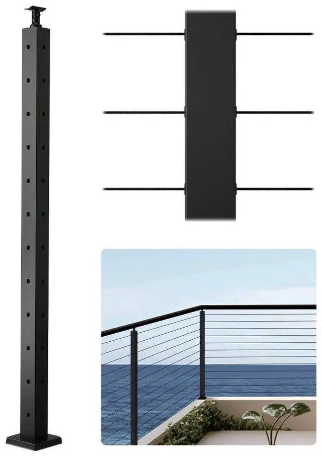 VEVOR Cable Railing Post, 42x2x2 Inch Corner Railing Post, with L-Shaped Pre-Drilled Holes, Stainless Steel Cable Rail Post with Horizontal and Curved Bracket, 1-Pack, Black, 1JZLGZXHS1065S1EW001V0