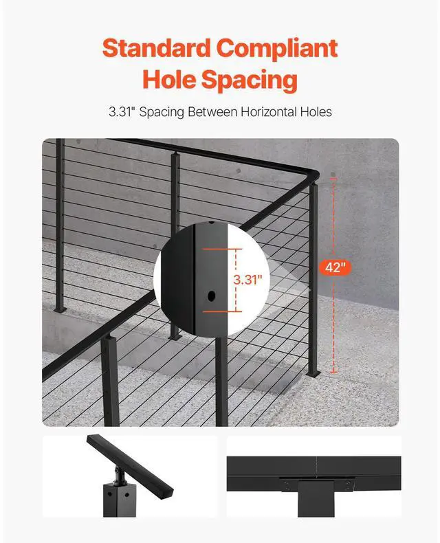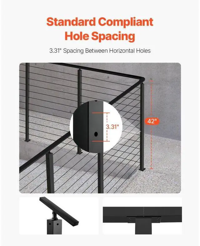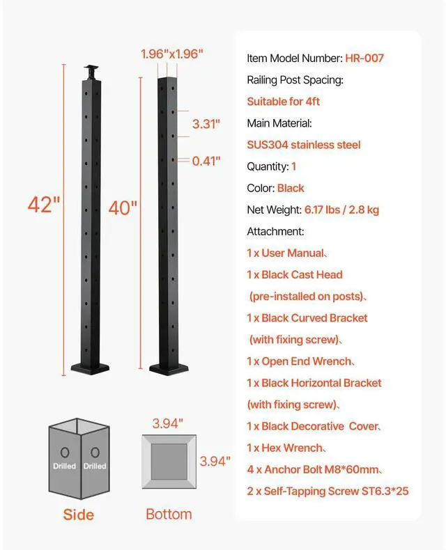 Number of Holes: 12,Color: Black,Item Model Number: HR-007,Quantity: 1,Railing Post Spacing: Suitable for up to 4ft,Net Weight(include Accessories): 6.17 lbs/2.8kg (±3%),Main Material: SUS304 Stainless Steel