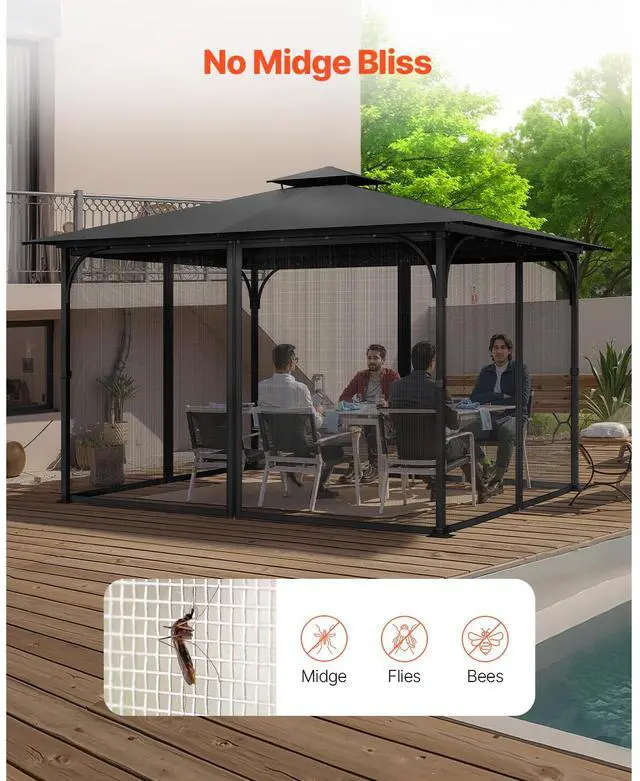 Color: Black,Item Model Number: JDM-34K,Product Weight: 3.86 lbs / 1.75 kg,Compatible Gazebo Dimensions: 10×13×6.8 ft / 304.8×396.2×207.3 cm,Compatible Gazebo Shapes: Rectangular, Square,Product Dimensions: 8.99×12.30×6.73 ft / 275×375×205 cm