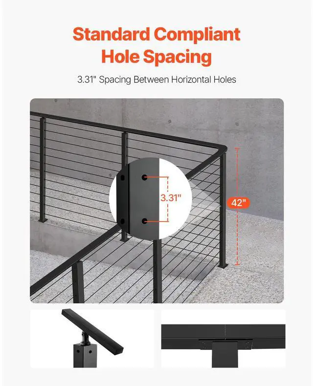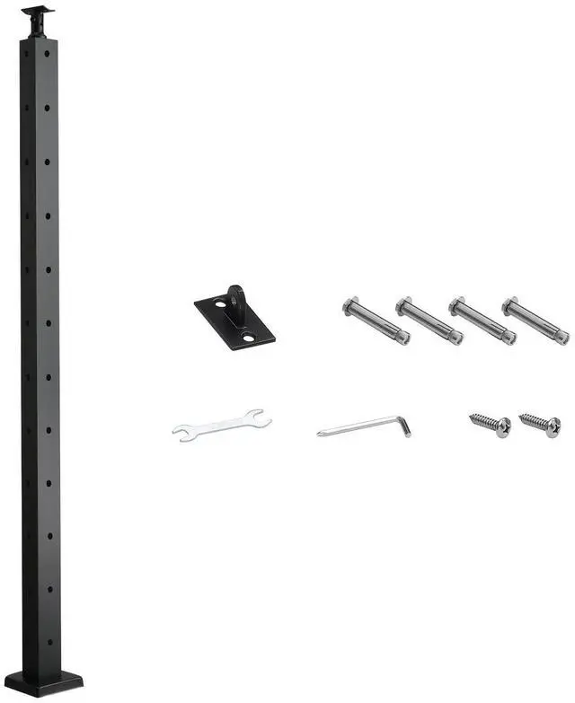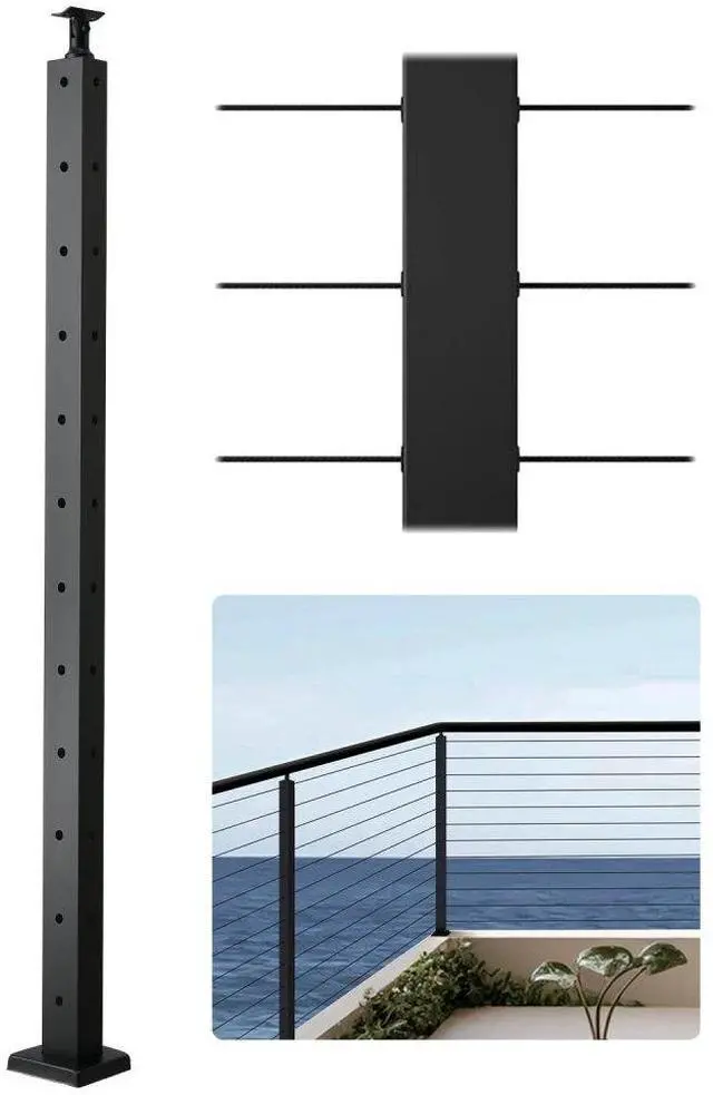 VEVOR Cable Railing Post, 42x1x2 Inch Corner Railing Post, with L-Shaped Pre-Drilled Holes, Stainless Steel Cable Rail Post with Horizontal and Curved Bracket, 1-Pack, Black, 1JZLGZXHS10607YXO001V0