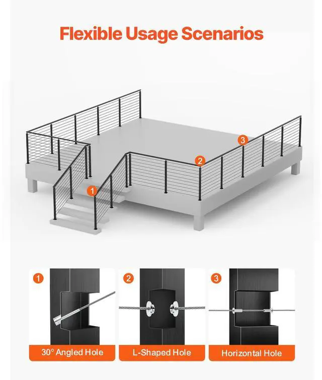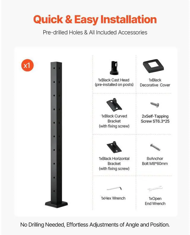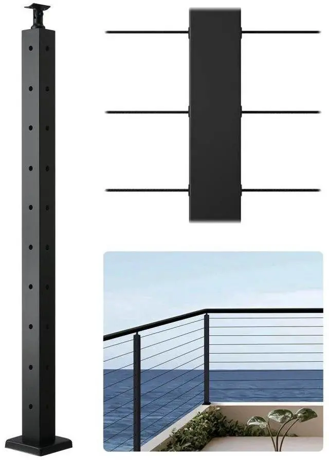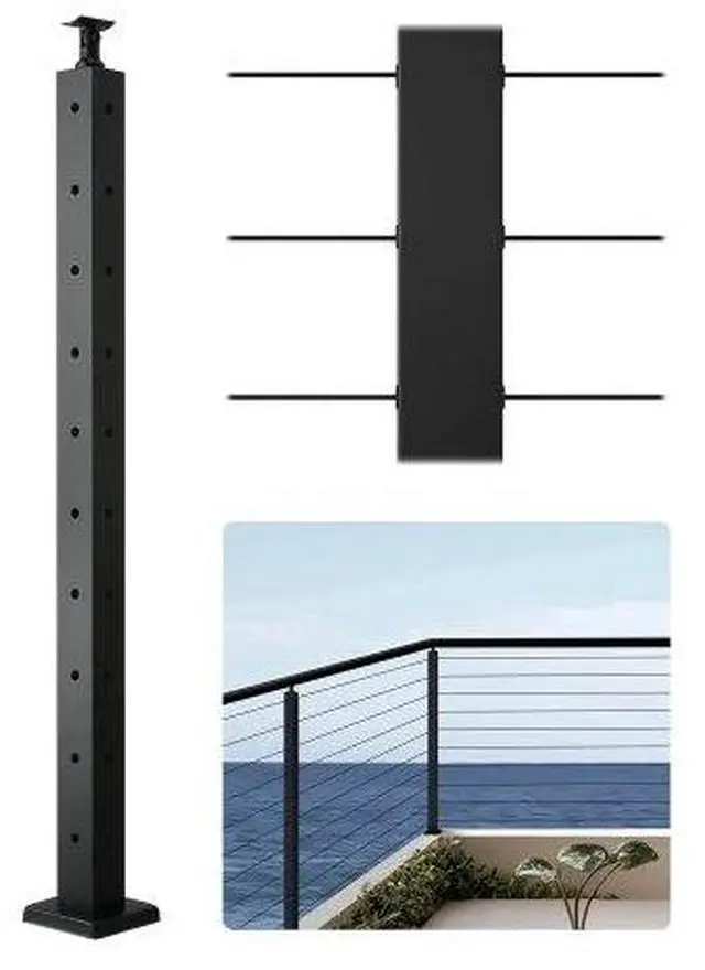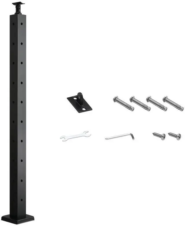 • VEVOR Cable Railing Post, 36x2x2 Inch Corner Railing Post, with L-Shaped Pre-Drilled Holes, Stainless Steel Cable Rail Post with Horizontal and Curved Bracket, 1-Pack, Black, 1JZLGZXHS914ZPBNY001V0
