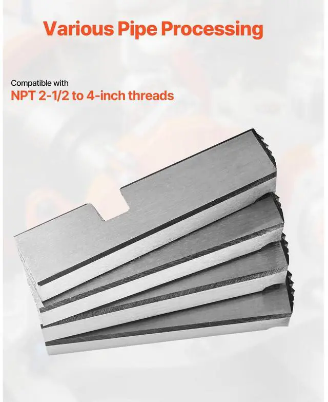 Type: Threading Machine Dies,Thread Size Compatibility: 2-1/2 to 4 inches,Item Model Number: KT211,Product Weight: 1.7 lbs / 0.7 kg,Quantity: 4 Pcs,Product Dimensions: 3.5" x 0.7" x 0.8" / 90 x 18 x 20 mm,Main Material: HSS(High-Speed Steel)