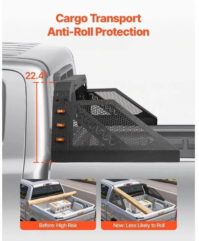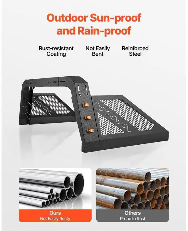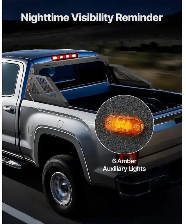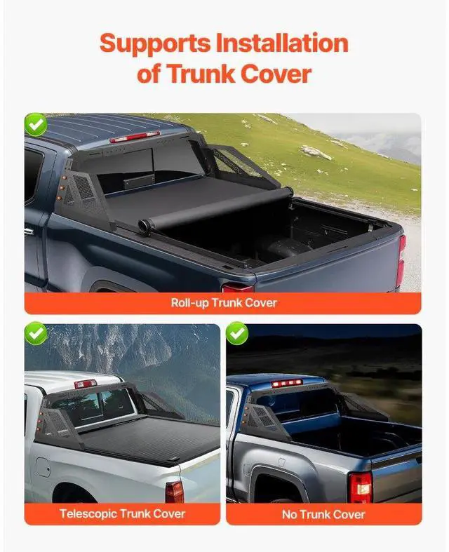 Truck Bed Roll Bar Universal Chase Rack with Light for Full-Size Pickup