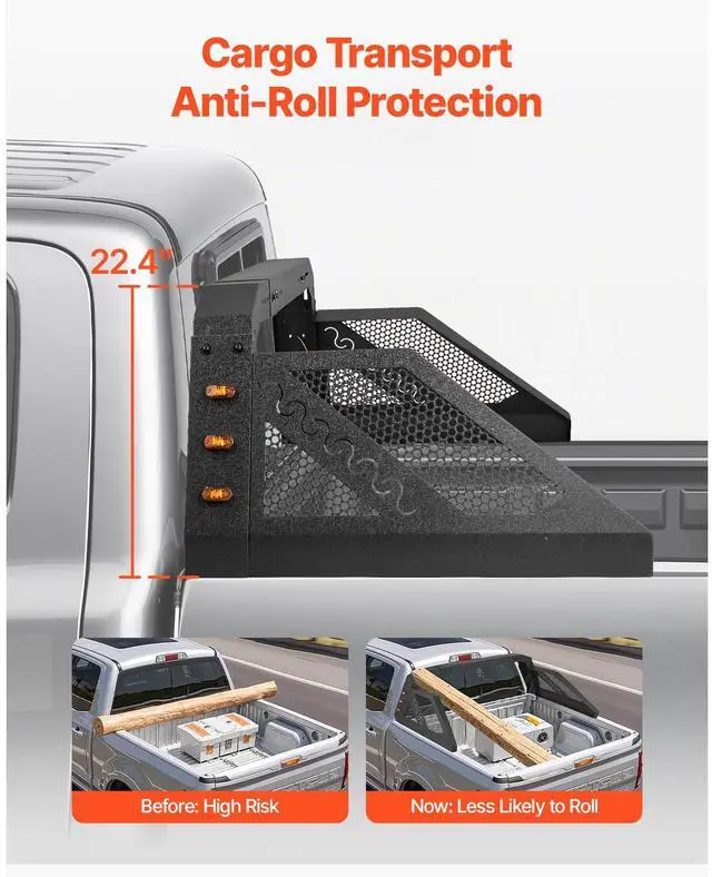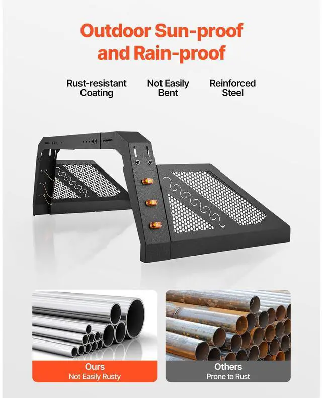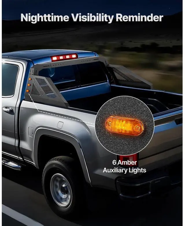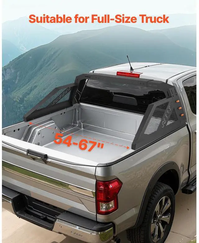 Truck Bed Roll Bar Universal Chase Rack with Light for Full-Size Pickup