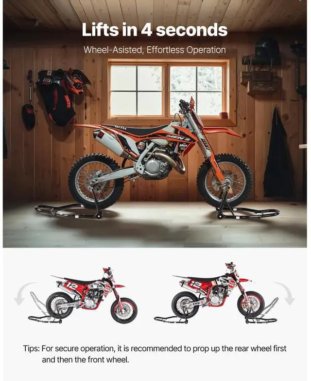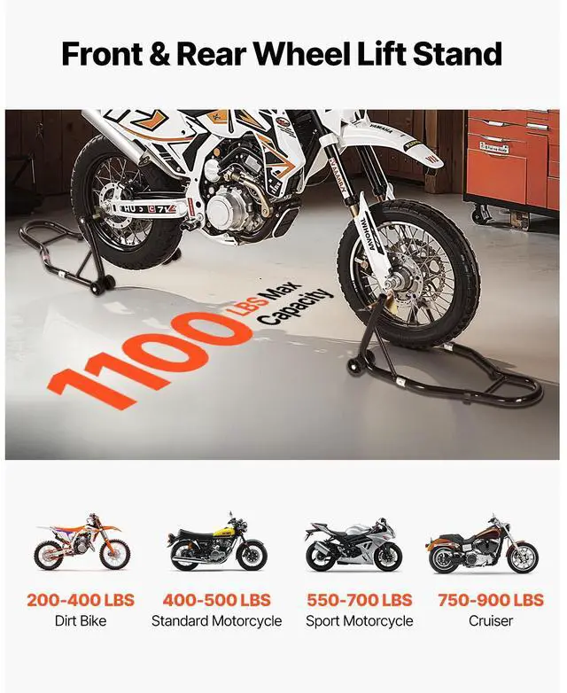Motorcycle Front & Rear Stand Lift 1100 lbs Spoolift Paddock Swingarm Arm Black