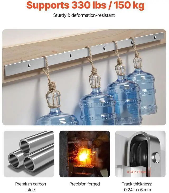 Track Weight Capacity: 330 lbs / 150 kg,Color: Matte Silver (Nickel-Plated),Item Model Number: 5FT-2D-5K-H,Dimensions: 59.06 x 1.57 x 0.02 in / 1500 x 40 x 6mm,Main Material: Carbon Steel,Weight: 12.24 lbs / 5.55 kg