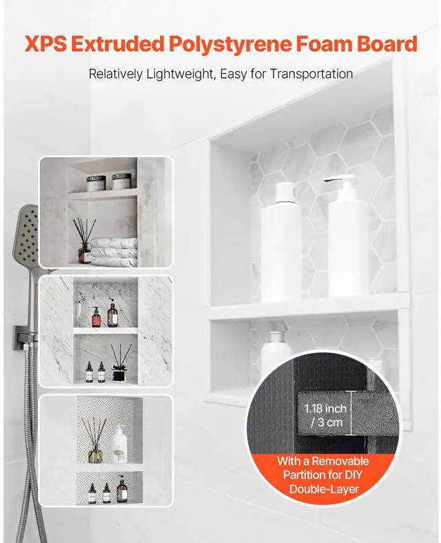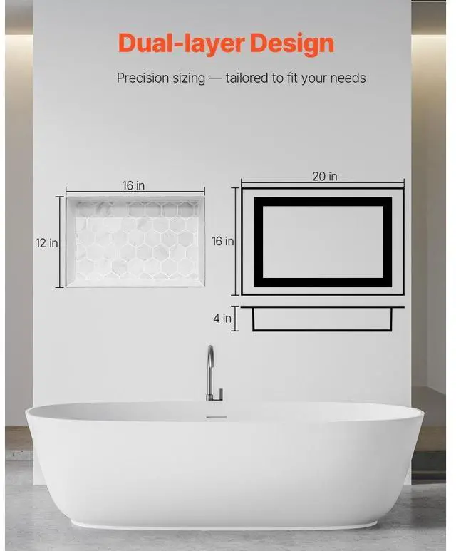 • VEVOR Shower Niche 16 x 20 x 4 inch Recessed Wall Divider Shelf for Bathroom