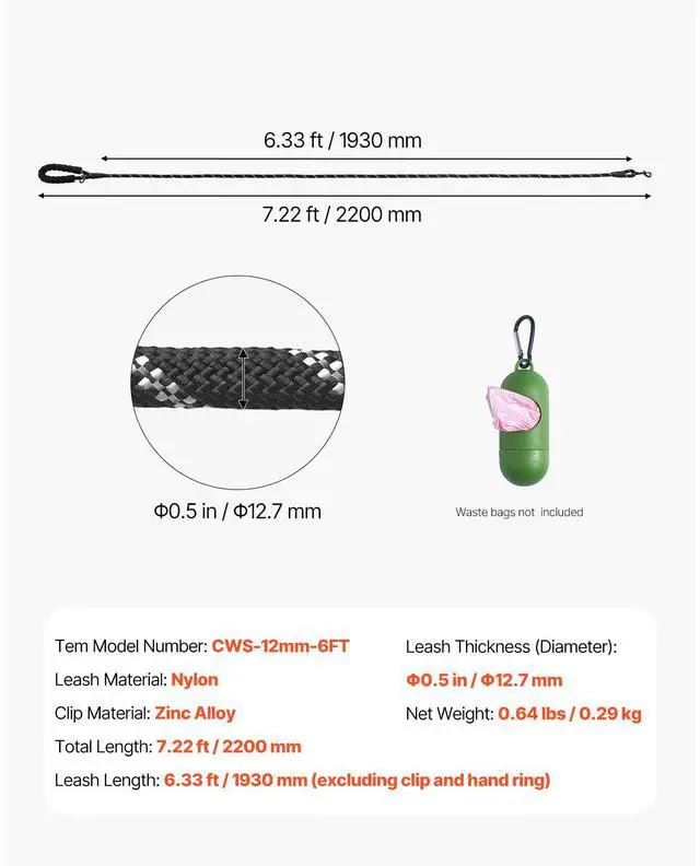 Leash Thickness (Diameter): 0.5 in / 12.7 mm